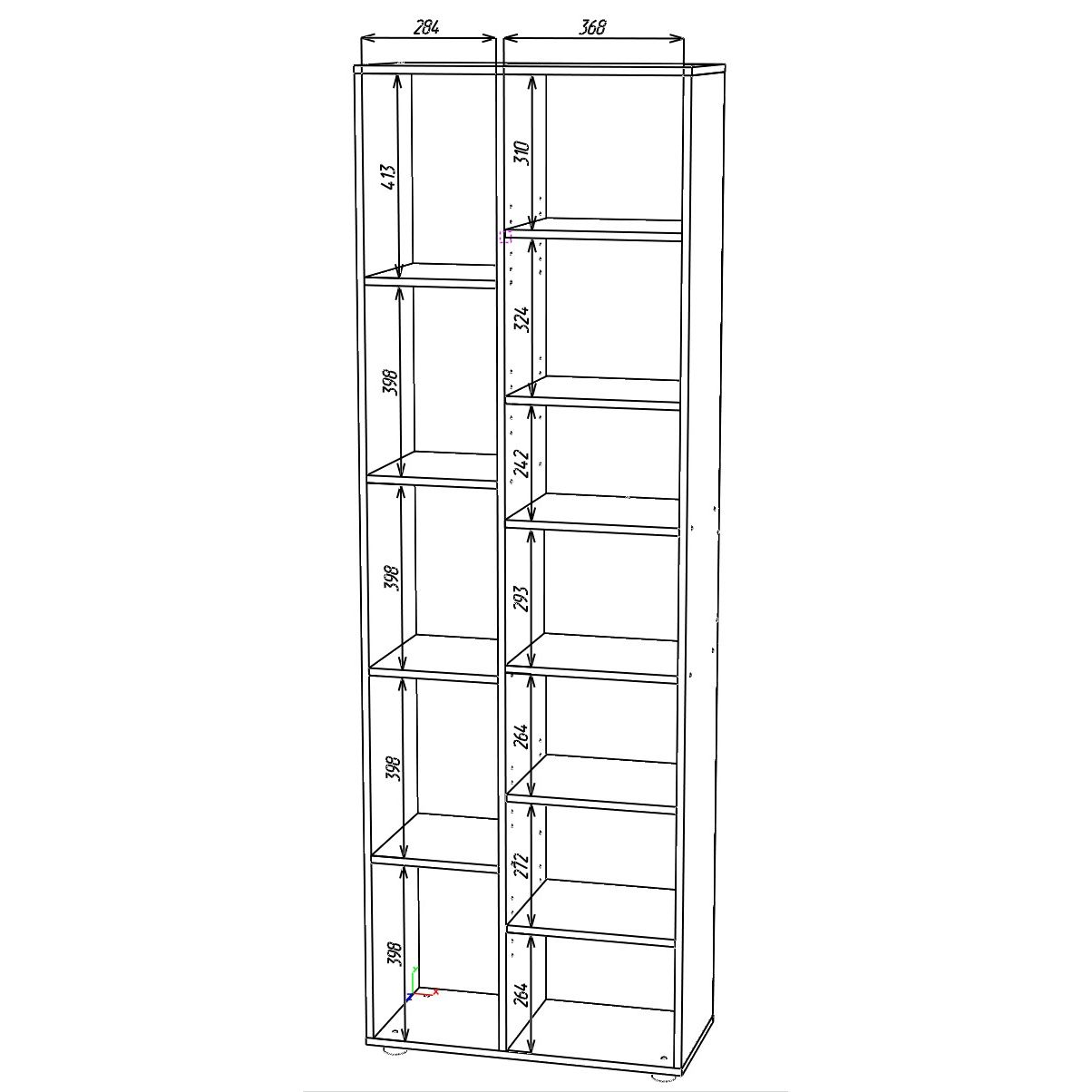 - Конструкція: відкрита частина з полицями + дверцята