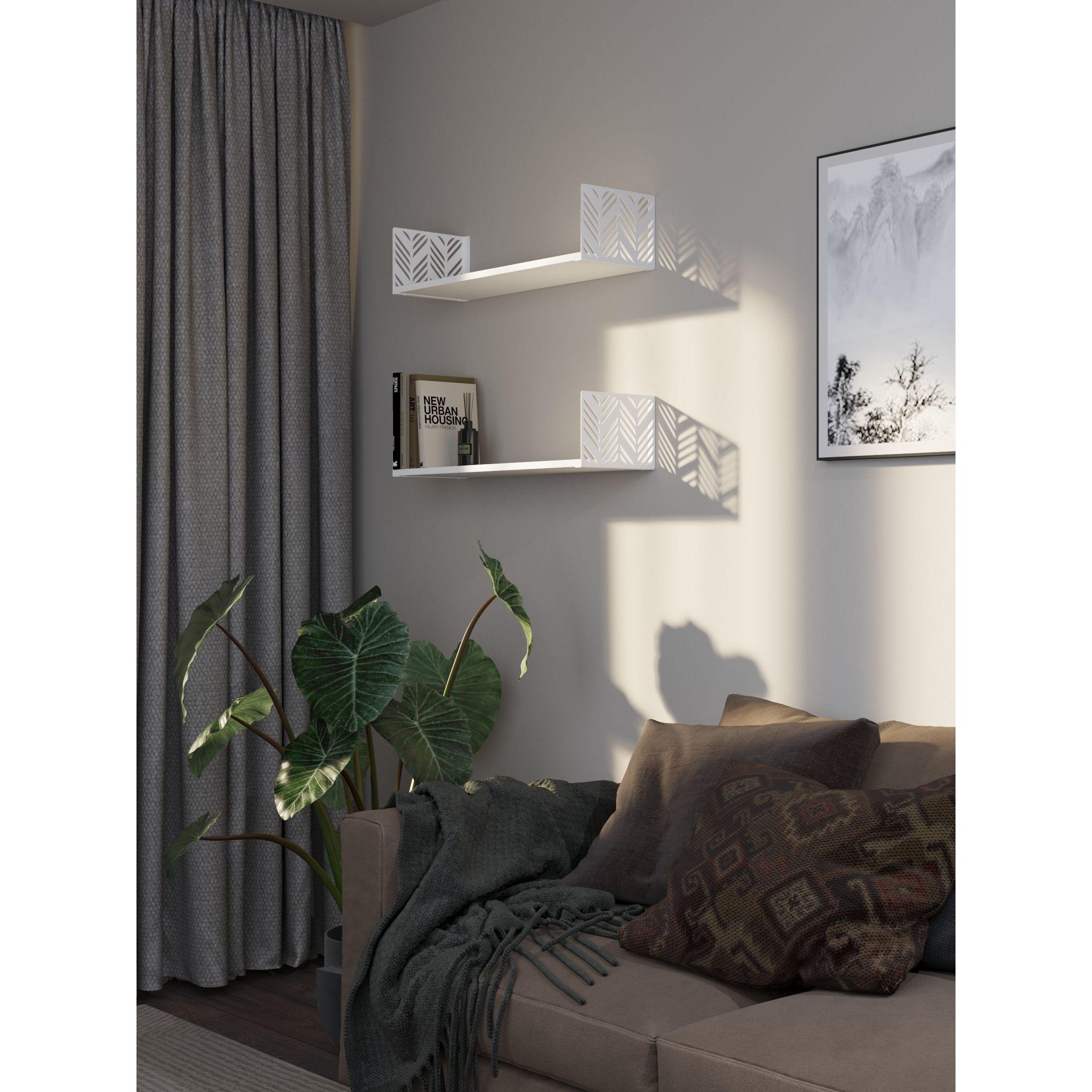Практична та стильна навісна поліця від бренду Metkas Home — це далі поєднання функціональності та сучасного дизайну. Завдяки металевим боковинам із декоративним лазерним різьбленням, поліця стане акцентом у будь-якому інтер'єрі — від мінімалізму до лофту.